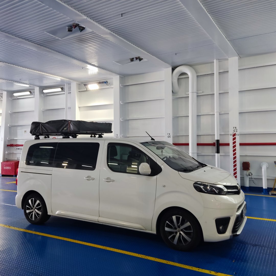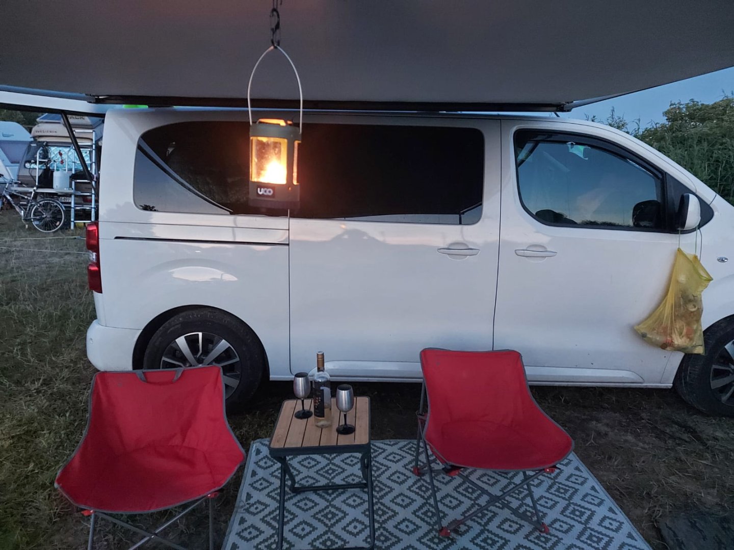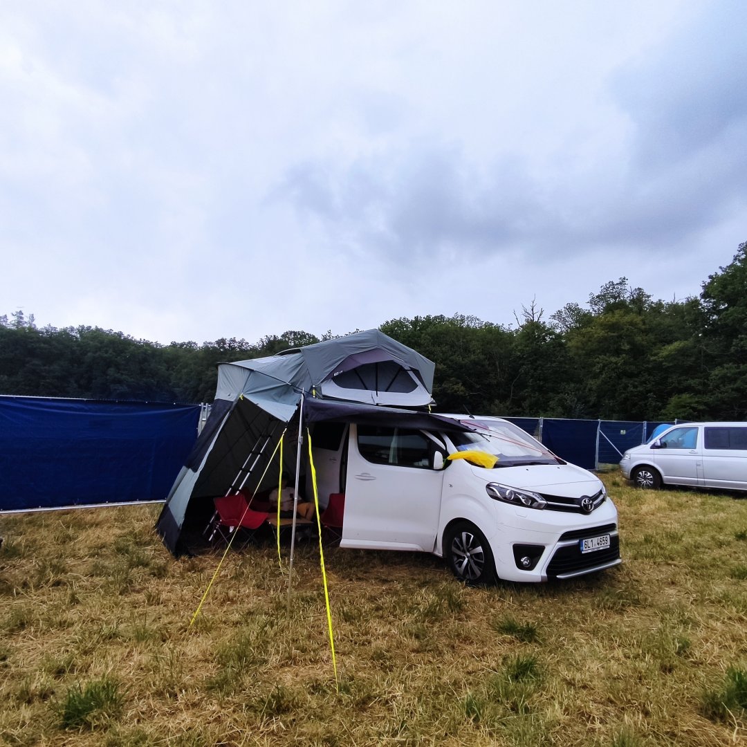 Spaní pro další 3 cestovatele je řešeno střešním stanem.
